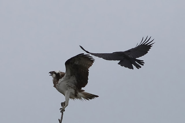 Just a few shots of the now departed Fishlake Osprey attracting the attention of a local Carrion Crow - something it did on many occasions! Its not very often that a Crow gets top billing when co-starring with an Osprey but on this occasion I can't help feeling its the Crow that steals the show...